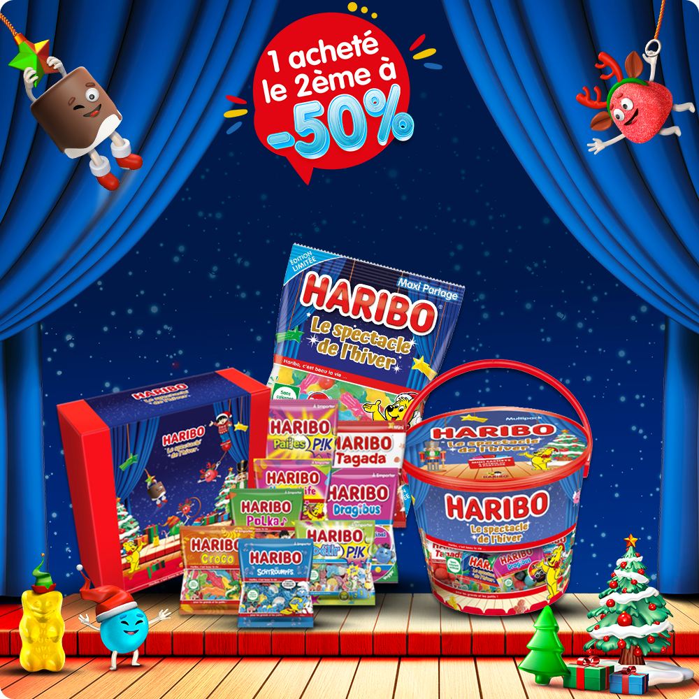 En étant sur le site de bonbons officiel HARIBO, vous avez accès à un vaste choix de bonbons que vous pouvez déjà trouver en boutique, en supermarchés … mais aussi à des produits exclusifs et même des idées pour vos candy bars. C’est idéal pour préparer un anniversaire, ou célébrer un événement : un achat de bonbons en quelques clics tout en profitant de l’univers unique de la marque HARIBO.