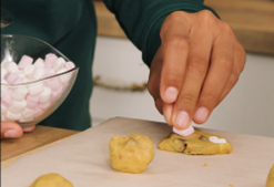Enfoncez 2–3 P'tits Chamallows supplémentaires sur le dessus de chaque cookie.