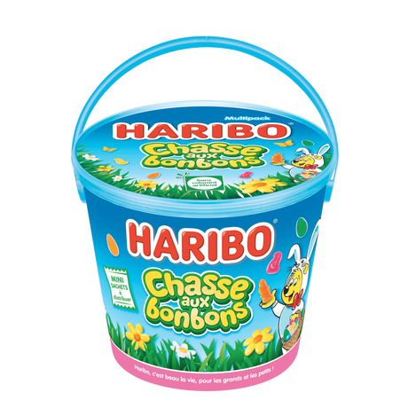 Découvrez le seau exclusif 800g de mini-sachets HARIBO édition spéciale Pâques : chasse aux bonbons !